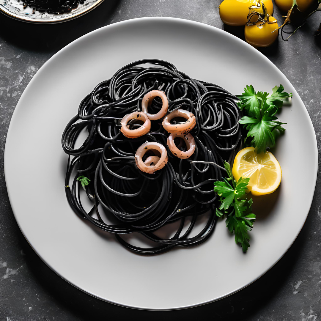 Pasta al Nero di Seppia là món mì Ý được chế biến cùng mực nang và mực đen tự nhiên. Món ăn đặc trưng của vùng Venice và Sicily, gây ấn tượng mạnh nhờ màu đen tuyền nổi bật và hương vị biển sâu đậm đà.