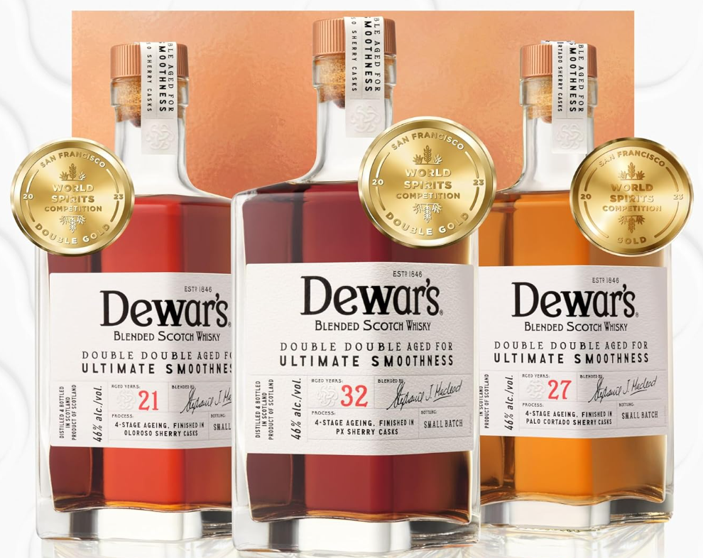 Ngoài dòng chính, nhà Dewar's còn có Double Double Series — dòng siêu cao cấp được ủ qua 4 loại thùng gỗ sồi khác nhau (quadruple cask finishing), tạo nên chiều sâu hương vị chưa từng có: