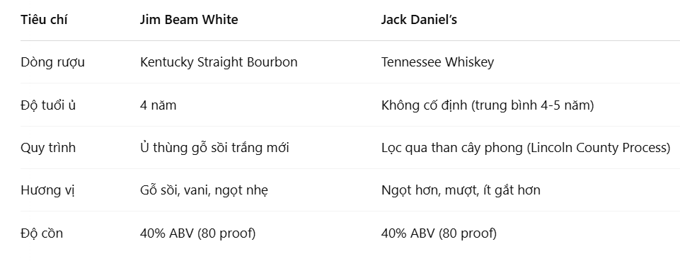 7. So sánh Jim Beam White và Jack Daniel’s – Bourbon vs Tennessee Whiskey